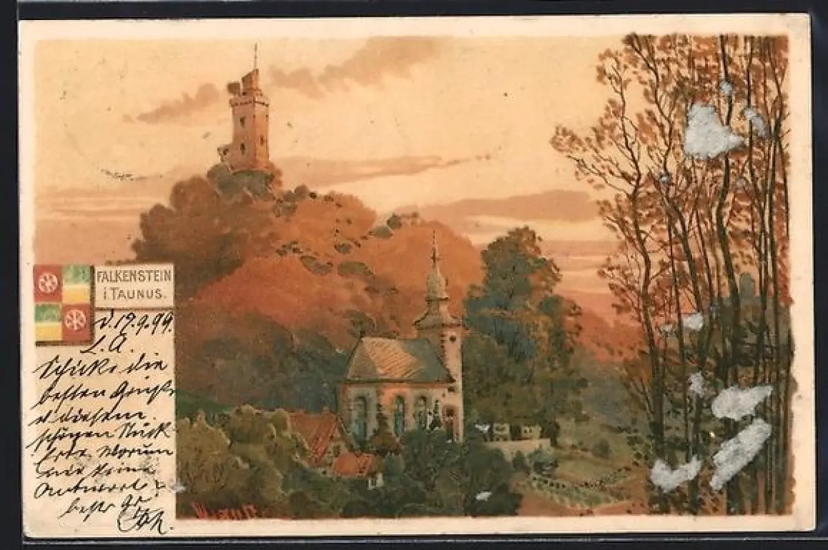 Lithographie Falkenstein i. Taunus, Blick zum Turm