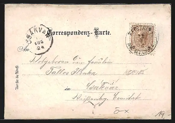 Personenbezogene Daten auf der Rückseite der Karte wurden durch blauen Textmarker unkenntlich gemacht. Die blauen Stellen sind auf die Vorderseite durchgeweicht und wirken sich negativ auf das Postkartenfoto aus