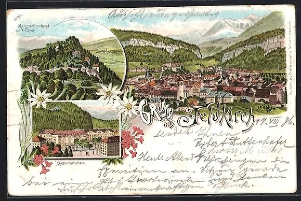Lithographie Feldkirch, Stella matutina, Margarethenkopf, Gesamtansicht