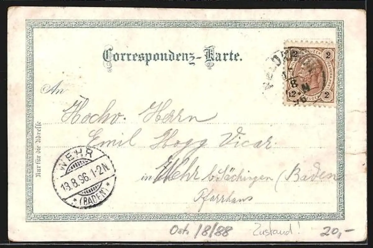 gelaufen 1896, zwei Einrisse li. mittig, sonst guter Zustand