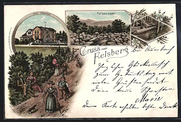Lithographie Felsberg / Borken, Hotel Haberkorn, Felsenmeer, Riesensäule