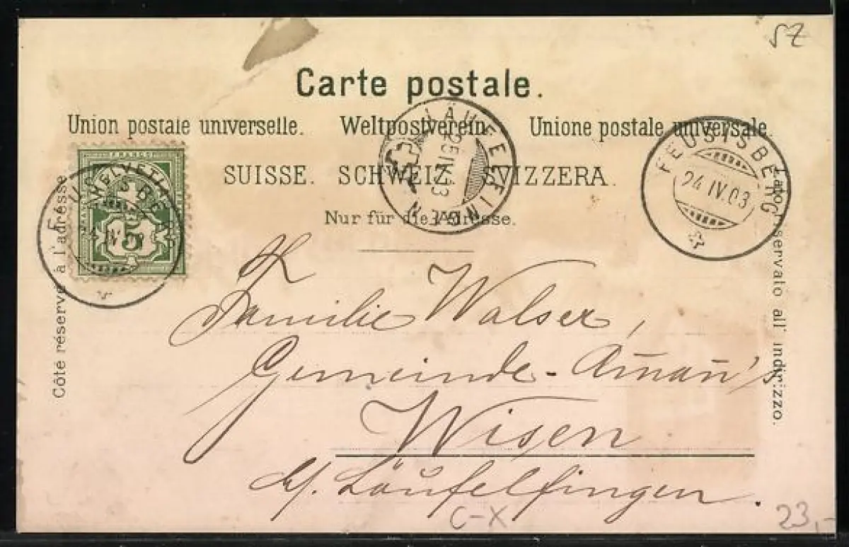 Lithographie Feusisberg, Pension Feusisgarten, Gasthof Feusisberg, Pension zur Frohen Aussicht