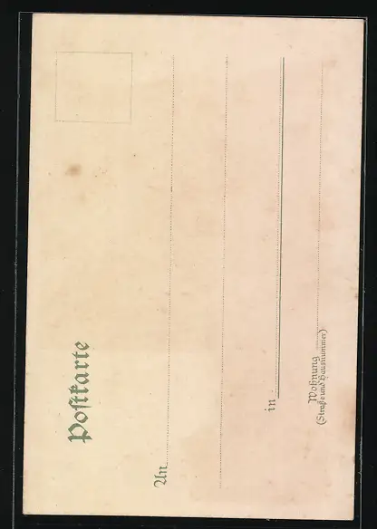 Personenbezogene Daten auf der Rückseite der Karte wurden durch blauen Textmarker unkenntlich gemacht. Die blauen Stellen sind auf die Vorderseite durchgeweicht und wirken sich negativ auf das Postkartenfoto aus