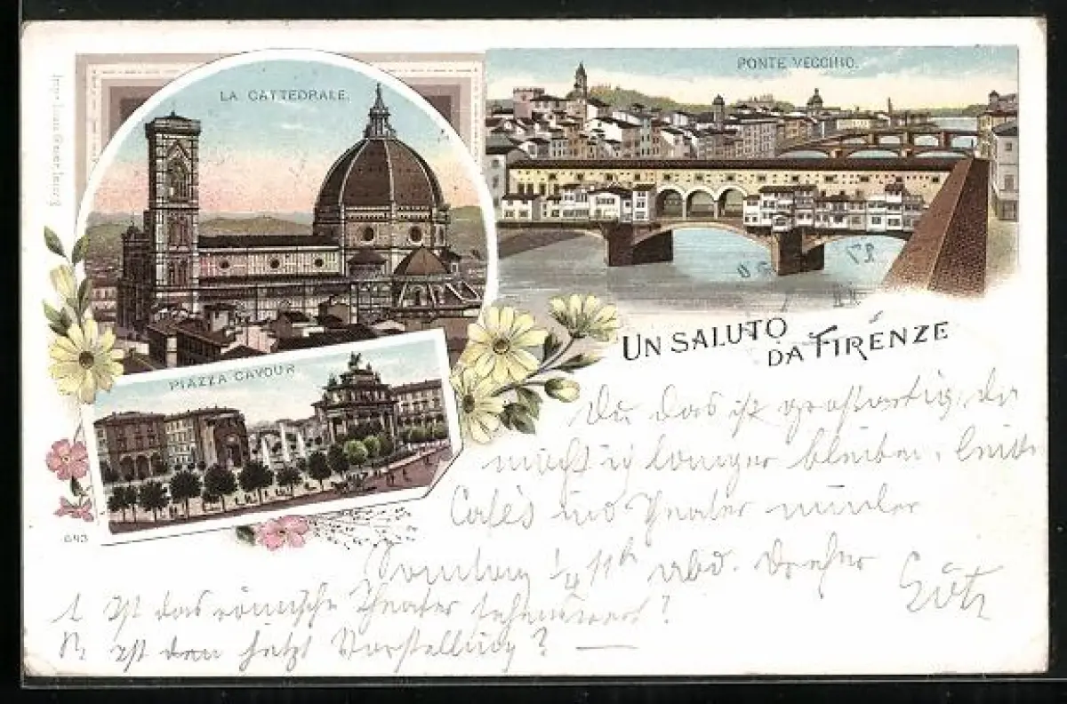 Lithographie Firenze, La Cattedrale, Piazza Cavour, Ponte Vecchio