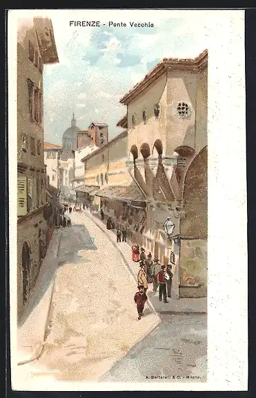 Lithographie Firenze, Ponte Vecchio, Geschäfte