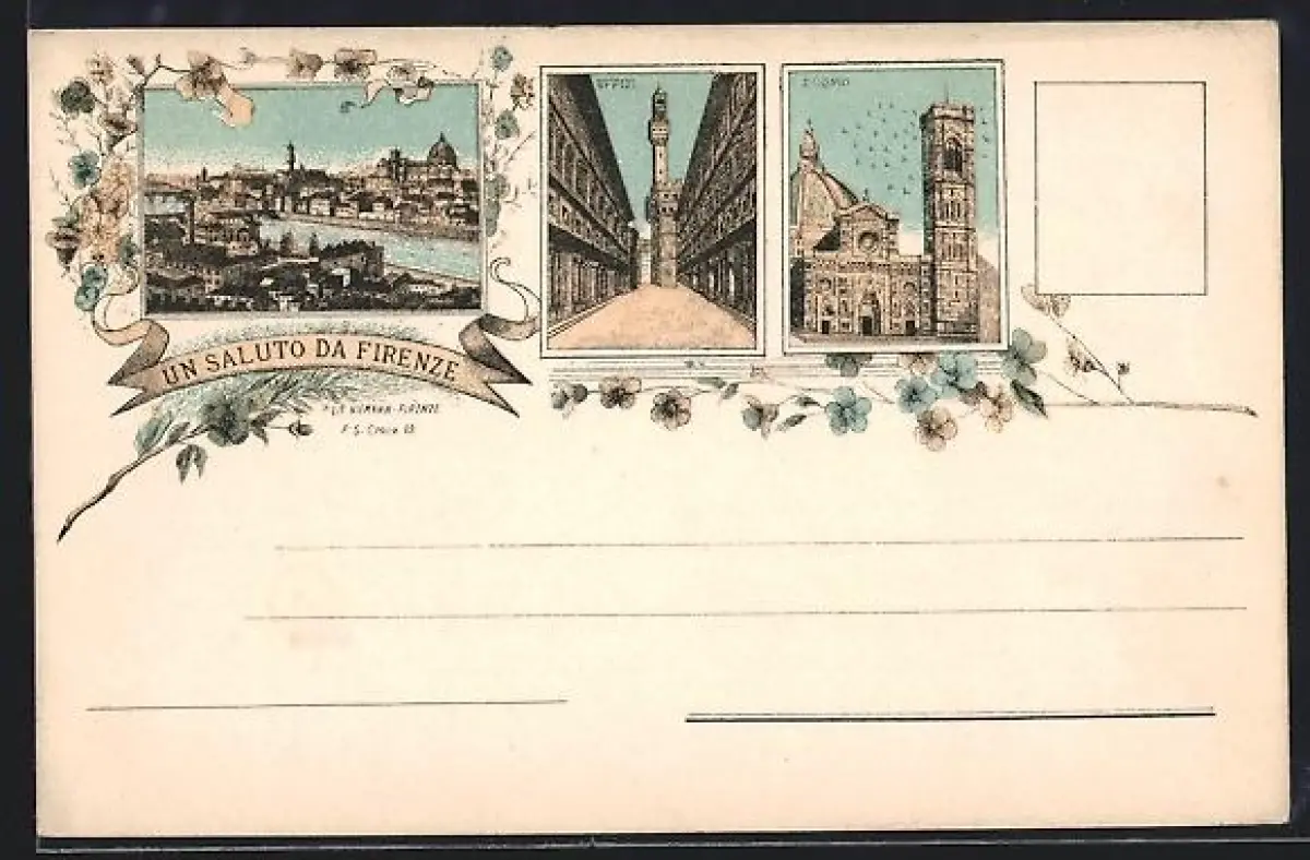 Lithographie Firenze, Uffizi, Duomo, Panorama