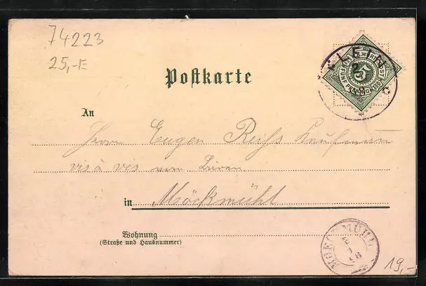 gelaufen 1898, Ecken bestoßen, guter Zustand