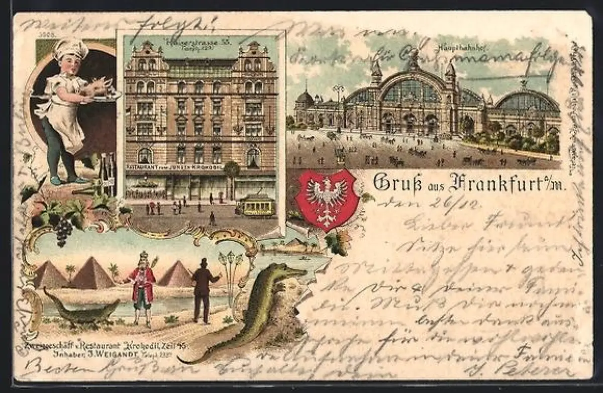 Lithographie Frankfurt /Main, Gasthaus zum Krokodil, Kaiserstrasse 55, Hauptbahnhof