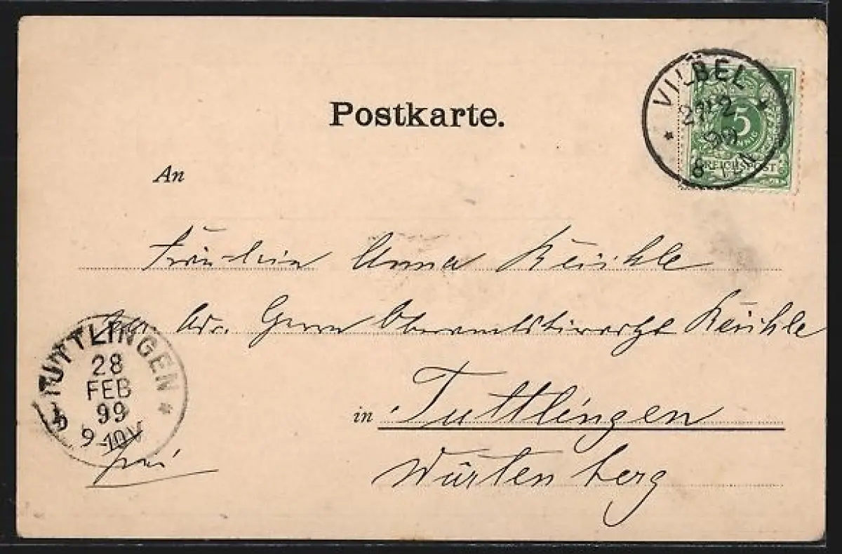 gelaufen 1899, Ecken bestoßen, Eckknick oben re., guter Zustand