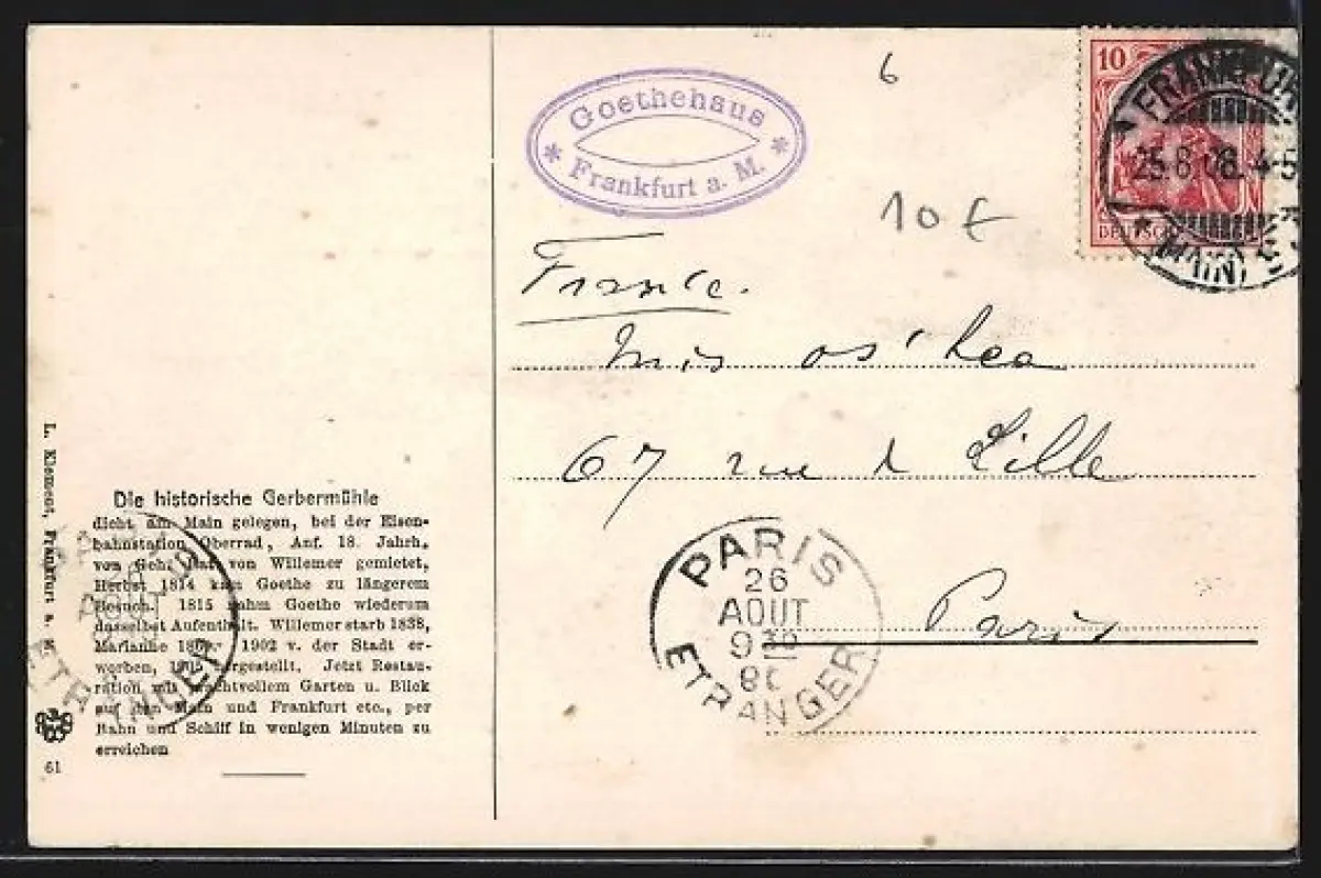 Lithographie Frankfurt-Oberrad, Historische Gerbermühle zu Lebzeiten Goethes