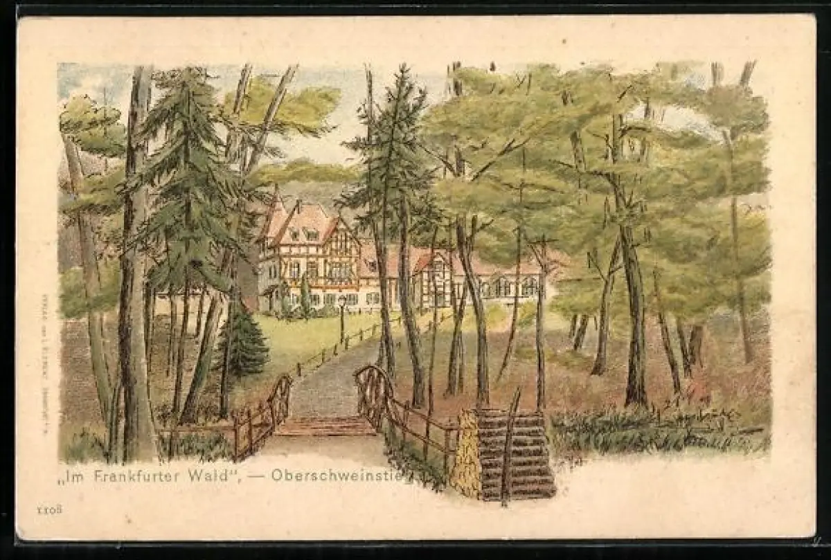 Lithographie Frankfurt-Sachsenhausen, Gasthof Oberschweinstiege