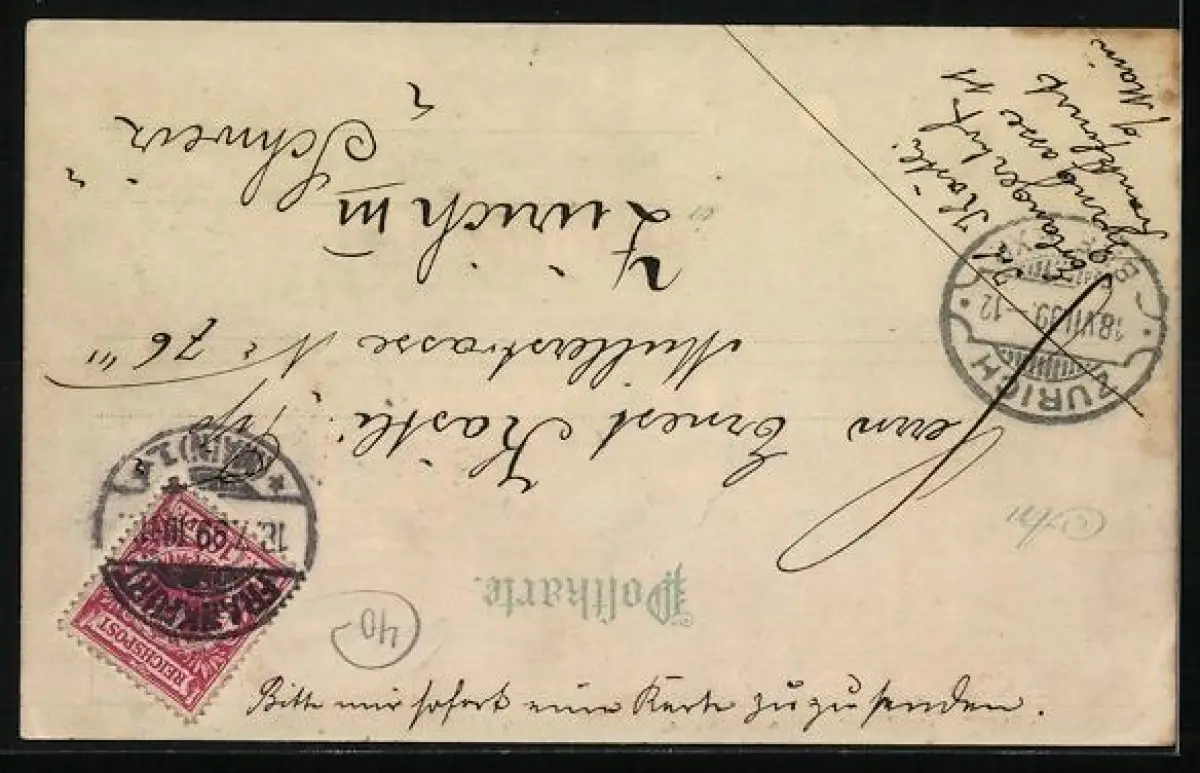 gelaufen 1899, Eckknick links unten, guter Zustand