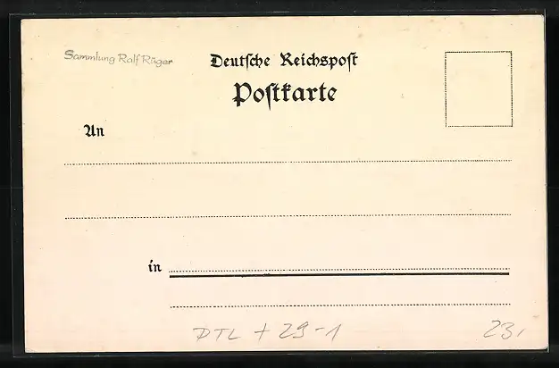 Personenbezogene Daten auf der Rückseite der Karte wurden durch blauen Textmarker unkenntlich gemacht. Die blauen Stellen sind auf die Vorderseite durchgeweicht und wirken sich negativ auf das Postkartenfoto aus