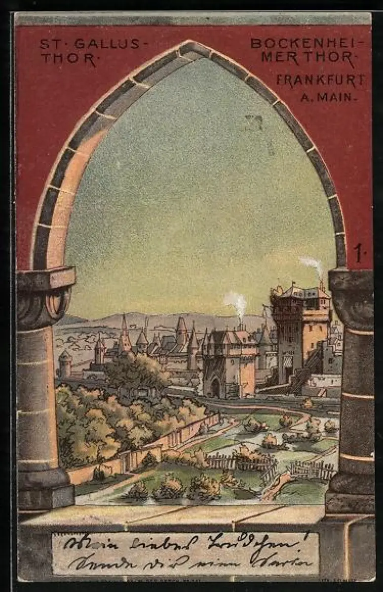 Lithographie Frankfurt a. Main, St. Gallusthor, Bockenheimer Thor