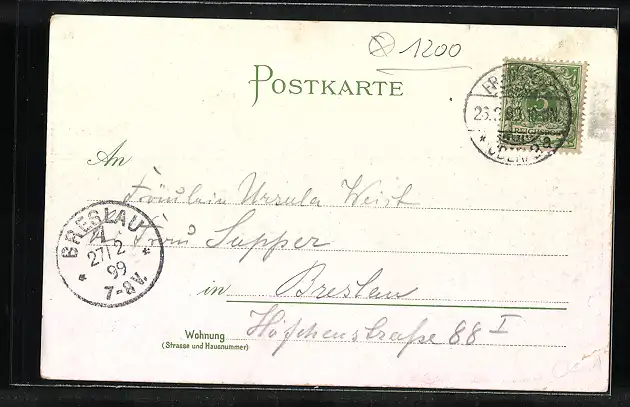 gelaufen 1899, Eckknick li. unten, guter Zustand