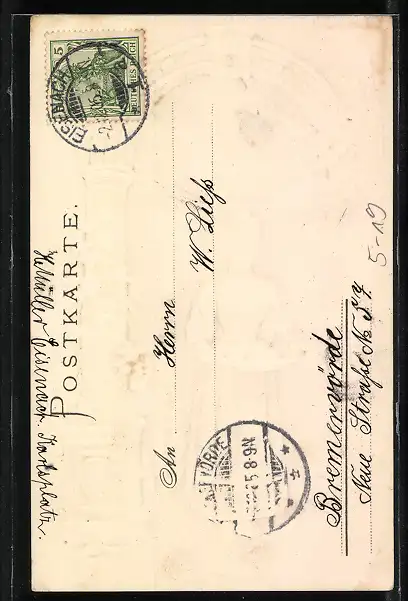 gelaufen 1905, Eckknick li. oben, guter Zustand