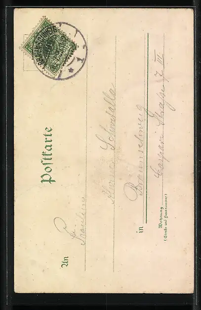 gelaufen 1899, Eckknick re. oben, Bugspuren re. oben und unten und li. mittig, sonst guter Zustand