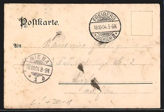 gelaufen 1904, Briefmarke entfernt, guter Zustand