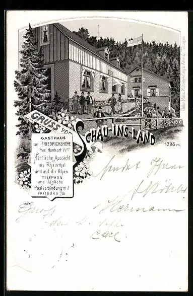 Lithographie Freiburg i. B., Gasthaus zur Friedrichshöhe, Rasthaus Schauinsland