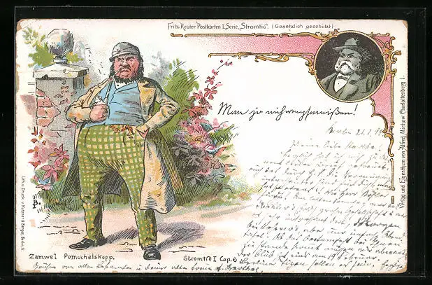 Lithographie Fritz Reuter, Stromtid, Zawel Pomuchelskopp