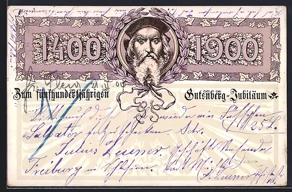 Lithographie Fünfhunderjähriges Gutenberg Jubiläum 1900