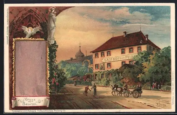 Lithographie G. Gugg: Beuron, Gasthof zum Pelikan