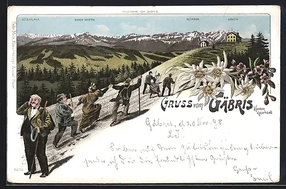 Lithographie Gäbris, Wanderer auf dem Weg zum Säntis