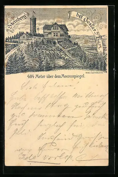 Lithographie Ganzsache PP9F383: Goslar a. Harz, Gasthaus und Aussichtsturm auf dem Steinberg
