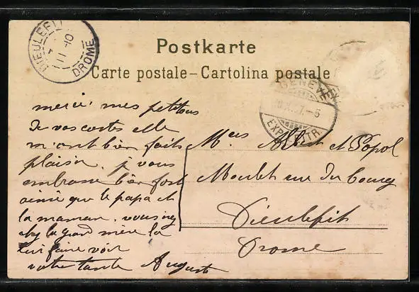 gelaufen 1907, Briefmarke entfernt, rückseitig Klebe- und Papierreste, rückseitig Oberflächenschaden, guter Zustand