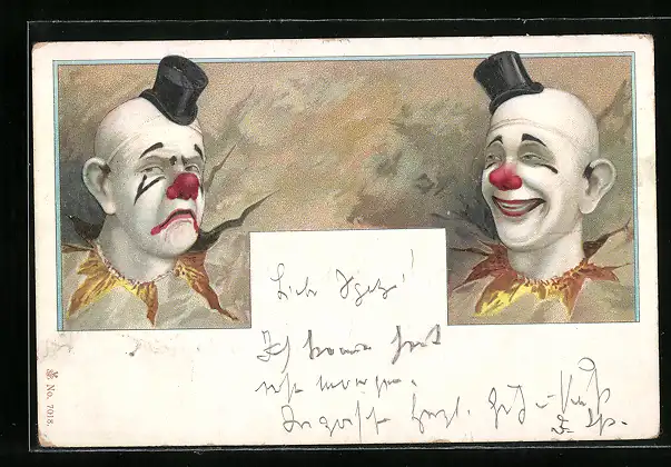 Lithographie Glücklicher und trauriger Clown, Zirkus