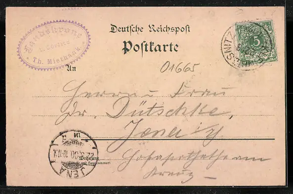 gelaufen 1900, Eckknick unten re., guter Zustand