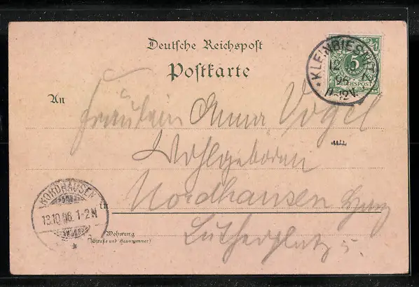 gelaufen 1896, Eckknick unten re., Bugspur oben li., Kleiner Einriss li. mittig, guter Zustand