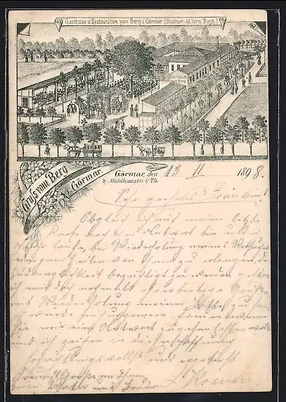 Lithographie Görmar b. Mühlhausen, Gasthaus-Restaurant zum Berg Ad. Herm. Busch