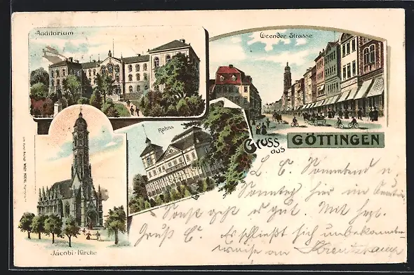 Lithographie Göttingen, Wwender Strasse, Auditorium, Rohns und Jacobi-Kirche