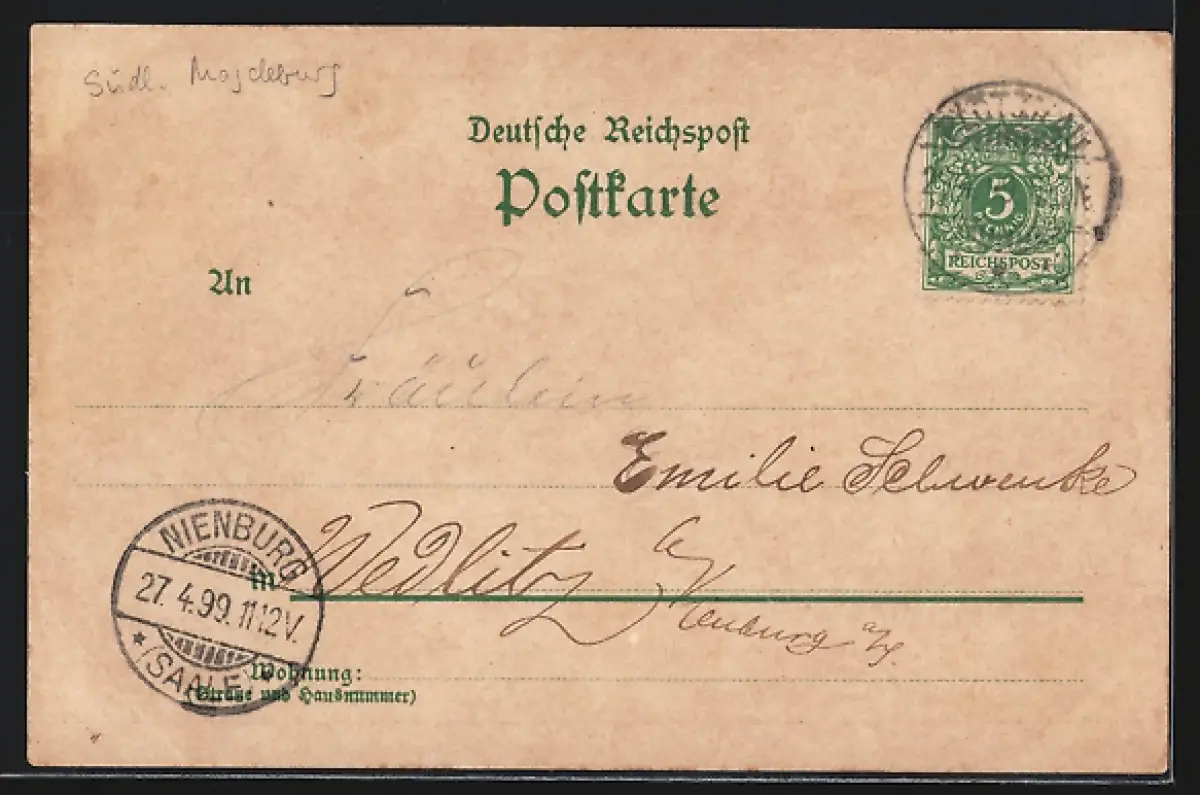 gelaufen 1899, Eckknick re. unten, guter Zustand