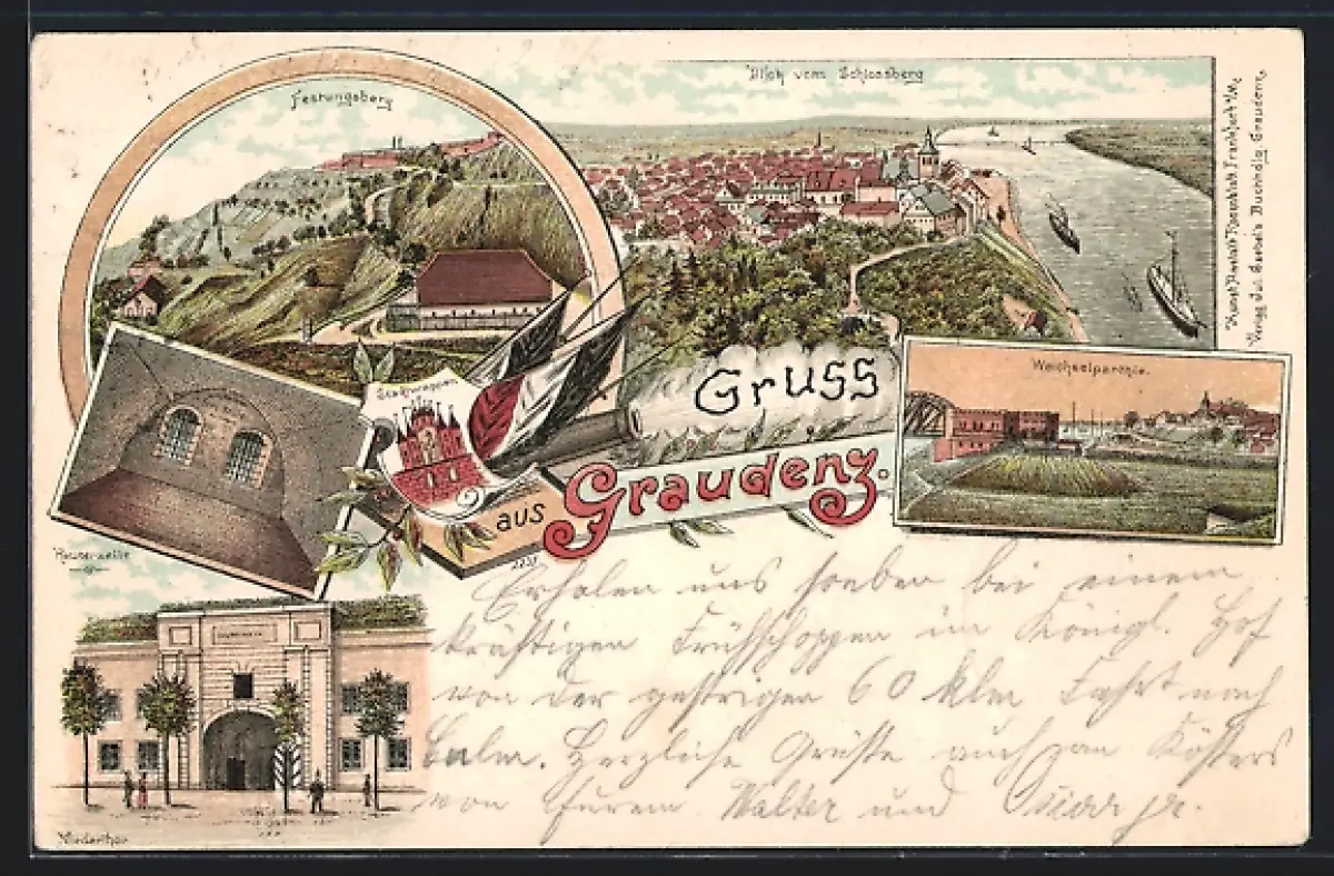 Lithographie Graudenz / Grudziadz, Reuterzelle, Festungsberg, Blick vom Schlossberg