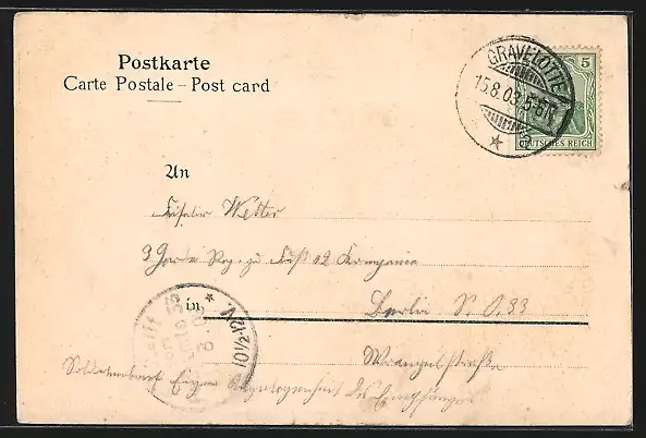 gelaufen 1903, Einrisse li. mittig und unten mittig, Stempelspur, guter Zustand