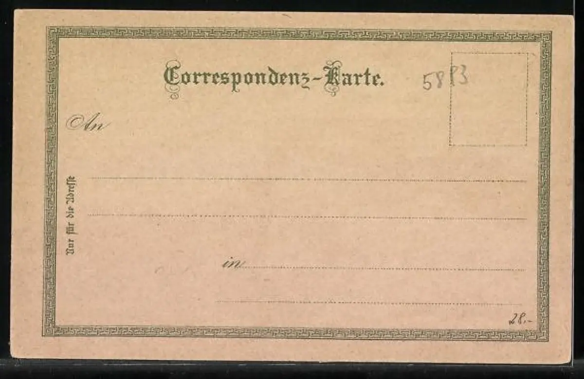Personenbezogene Daten auf der Rückseite der Karte wurden durch blauen Textmarker unkenntlich gemacht. Die blauen Stellen sind auf die Vorderseite durchgeweicht und wirken sich negativ auf das Postkartenfoto aus