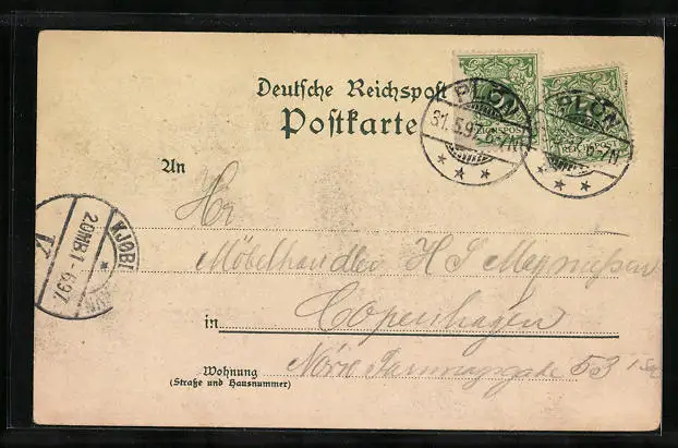 gelaufen 1897, Briefmarke tw. entfernt, Eckknicke li. oben u. re. unten, guter Zustand