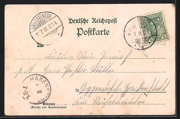 gelaufen 1901, Eckknicke li. unten u. re. oben, guter Zustand