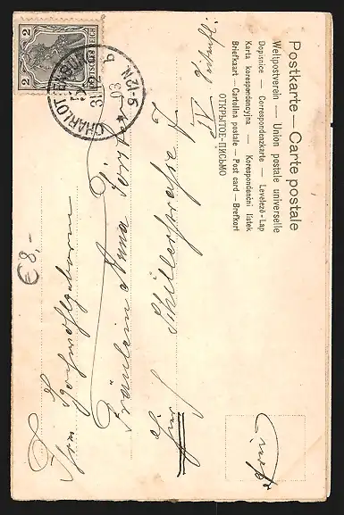 gelaufen 1903, kl. Einriss li. oben, guter Zustand