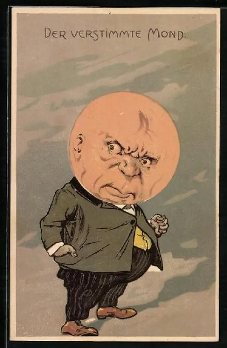 Lithographie Gruss vom Memminger Mau, Scherz, Mondgesicht