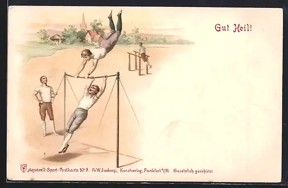 Lithographie Gut Heil!, Barren und Reckstange, Turner