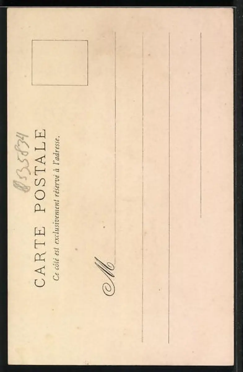 Personenbezogene Daten auf der Rückseite der Karte wurden durch blauen Textmarker unkenntlich gemacht. Die blauen Stellen sind auf die Vorderseite durchgeweicht und wirken sich negativ auf das Postkartenfoto aus