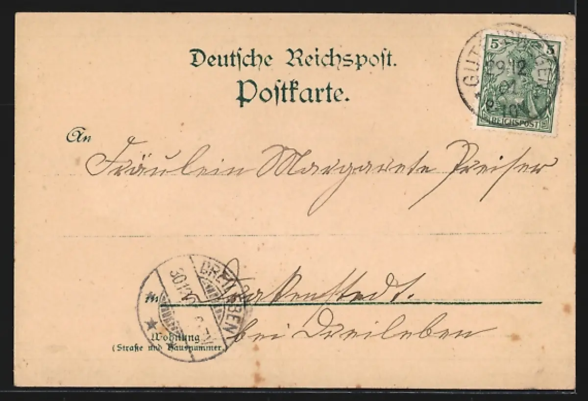 gelaufen 1901, Eckknick re. unten, guter Zustand