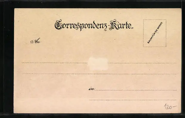 Personenbezogene Daten auf der Rückseite der Karte wurden durch blauen Textmarker unkenntlich gemacht. Die blauen Stellen sind auf die Vorderseite durchgeweicht und wirken sich negativ auf das Postkartenfoto aus