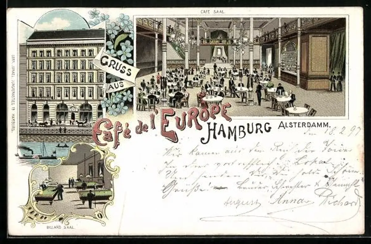 Lithographie Hamburg, Cafe de L`Europe, Alsterdamm