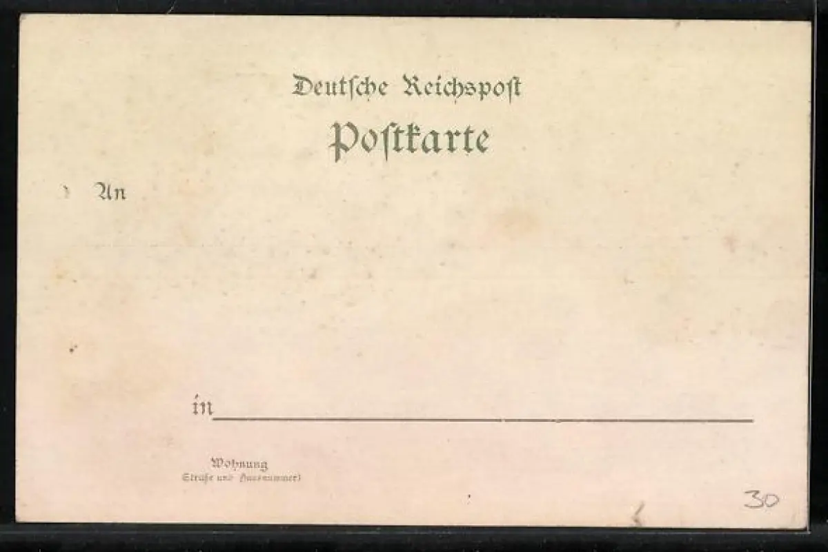 Personenbezogene Daten auf der Rückseite der Karte wurden durch blauen Textmarker unkenntlich gemacht. Die blauen Stellen sind auf die Vorderseite durchgeweicht und wirken sich negativ auf das Postkartenfoto aus