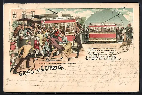 Lithographie Hamburg, Erstürmung eines Motorwagens der Elektrischen Strassenbahn
