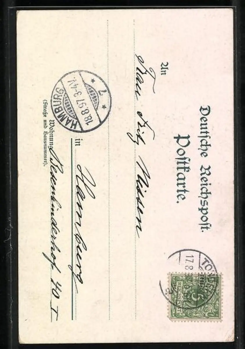 gelaufen 1897, Eckknick rechts oben, guter Zustand
